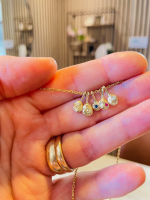 Disse små fine "nugget" vedhæng har hver deres helt unikke form og udseende. De er lavet ved at smelte guldet til det samler sig, og så presse det ned i en rustik overflade. På den måde får vedhænget den form, som metalet selv vil.
