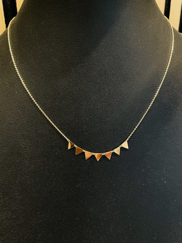 En tynd ankerkæde på 1,1 mm i tykkelsen. Midt på kæden er der monteret 7 små trekanter, der hver især måler ca. 6 x 6 mm