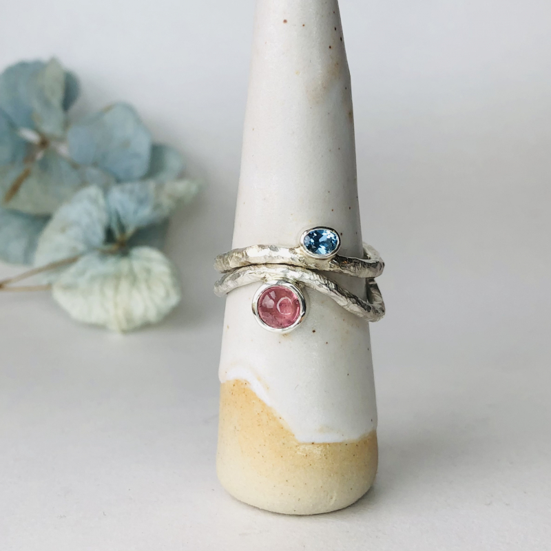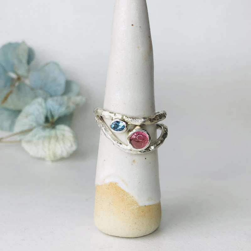 OBS: Eksempel vist sammen med anden ring med lyserød turmalin, medfølger ikke